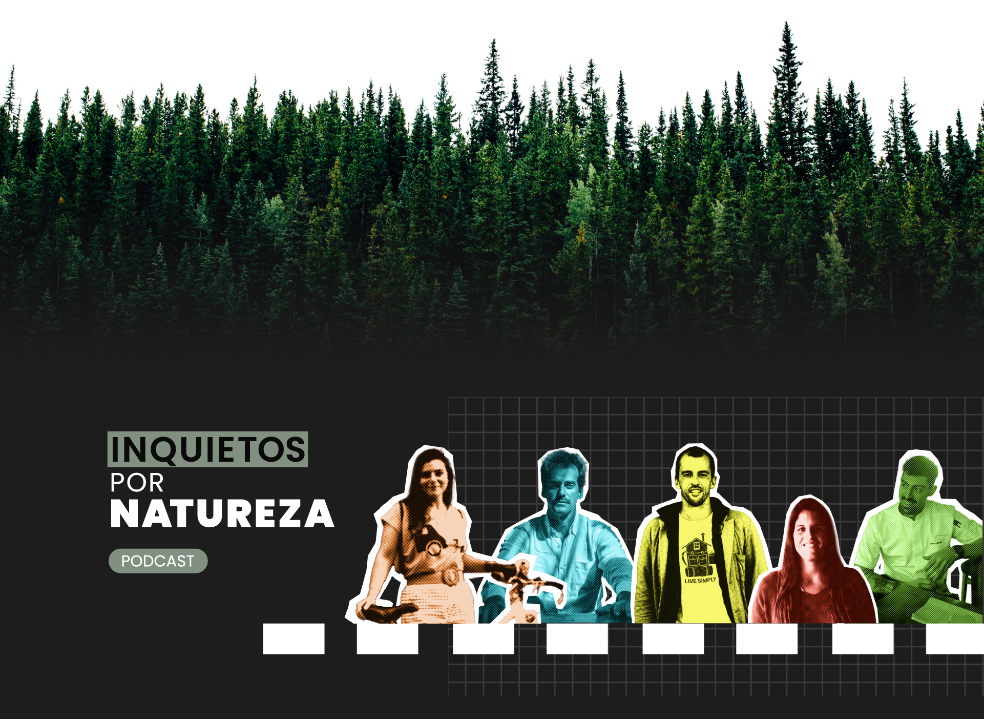 Visual identity for the special podcast Restless by Nature (translation of Inquietos por Natureza), featuring guests from sustainable architecture, food systems, mobility and related fields